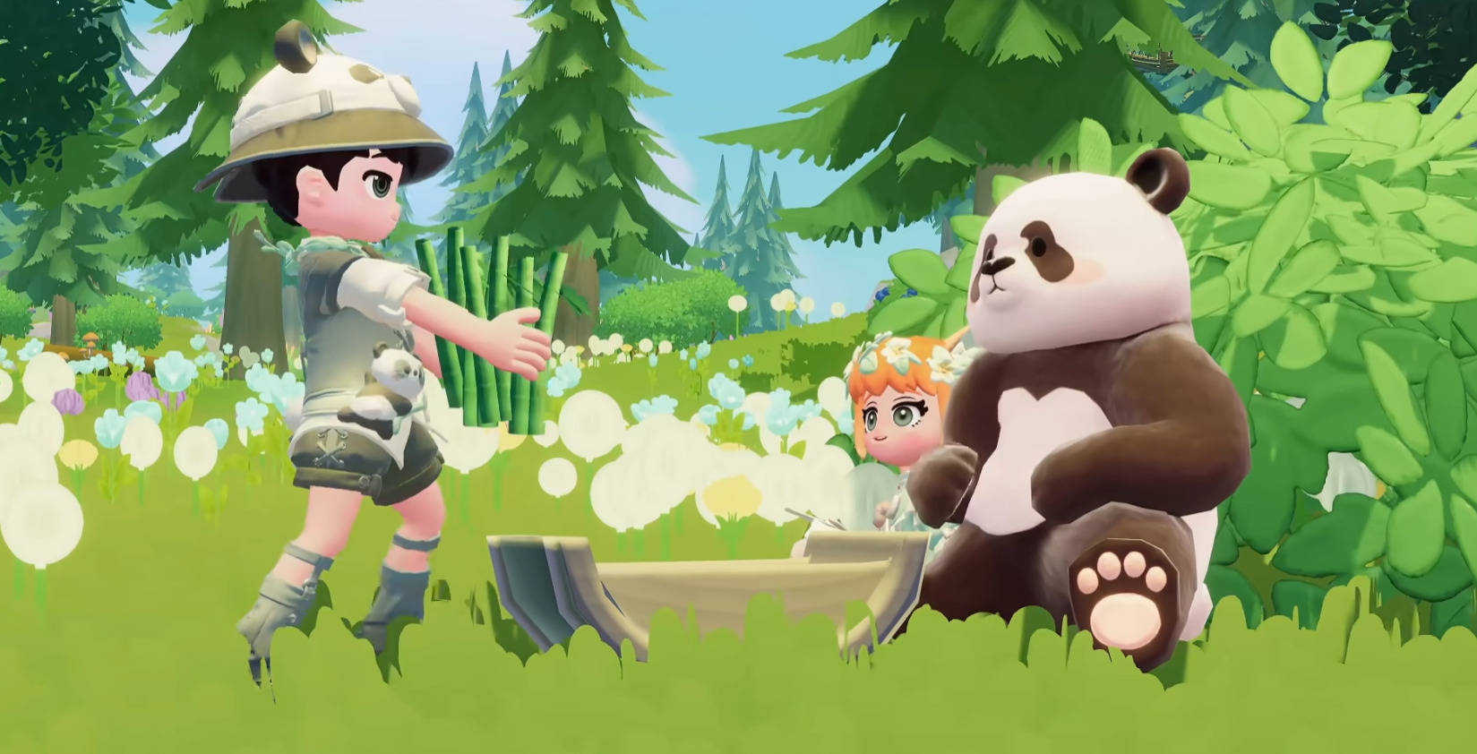 接下来驱车前往竹林区域,就有机会和憨态可掬的熊猫们进行互动,还可以采集限定食材“竹笋”、进行烹饪与喂养。当你完成了足够多的的食槽填充操作、就能不断提升熊猫的好感,进而解锁熊猫拜访家园与更多的交互动作。而上述玩法还不仅仅只有熊猫,卡皮巴拉、羊驼、狐狸等一众新登岛的动物伙伴们也有属于总计的聚集地,温泉山、花田、城镇中心等地区都有可爱小动物等着你来探访。