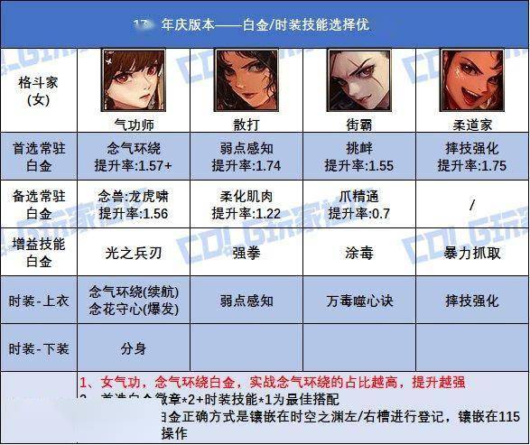 DNF17周年庆版本已经上线一段时间了,同步上线的还有VP改版和一些职业的武器精通整合,比如女街霸,那么DNF17周年庆版本女街霸时装上衣选什么技能?下面就给大家带来DNF17周年庆版本女街霸时装上衣技能选择。