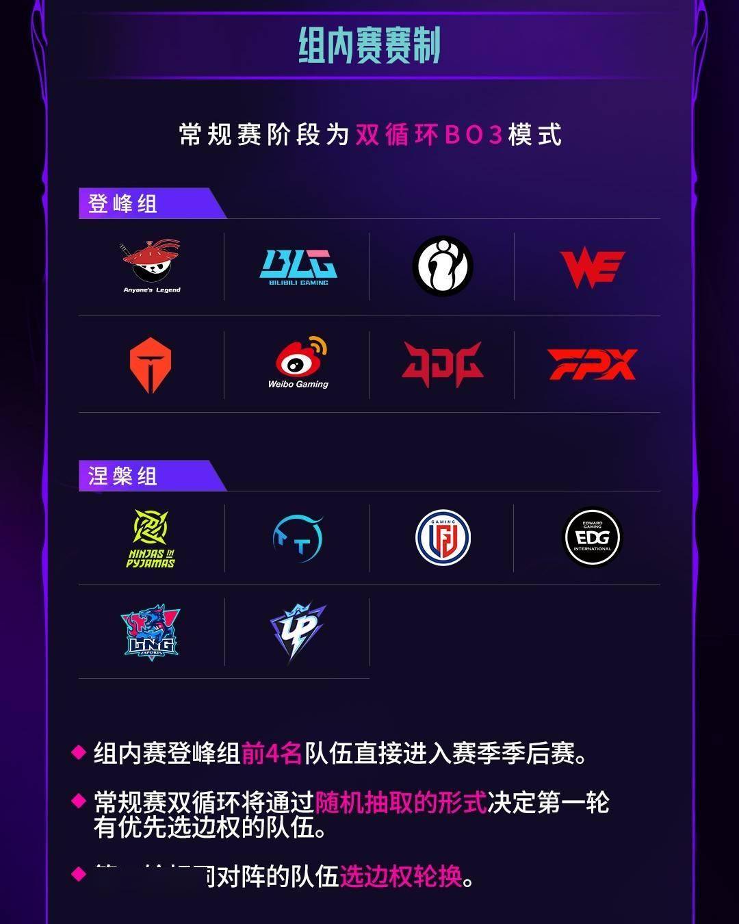 根据队伍在今年第二赛段的成绩,LPL 在第三赛段将 14 支参赛队伍分为上位的 8 队登峰组和下位的 6 队涅槃组。