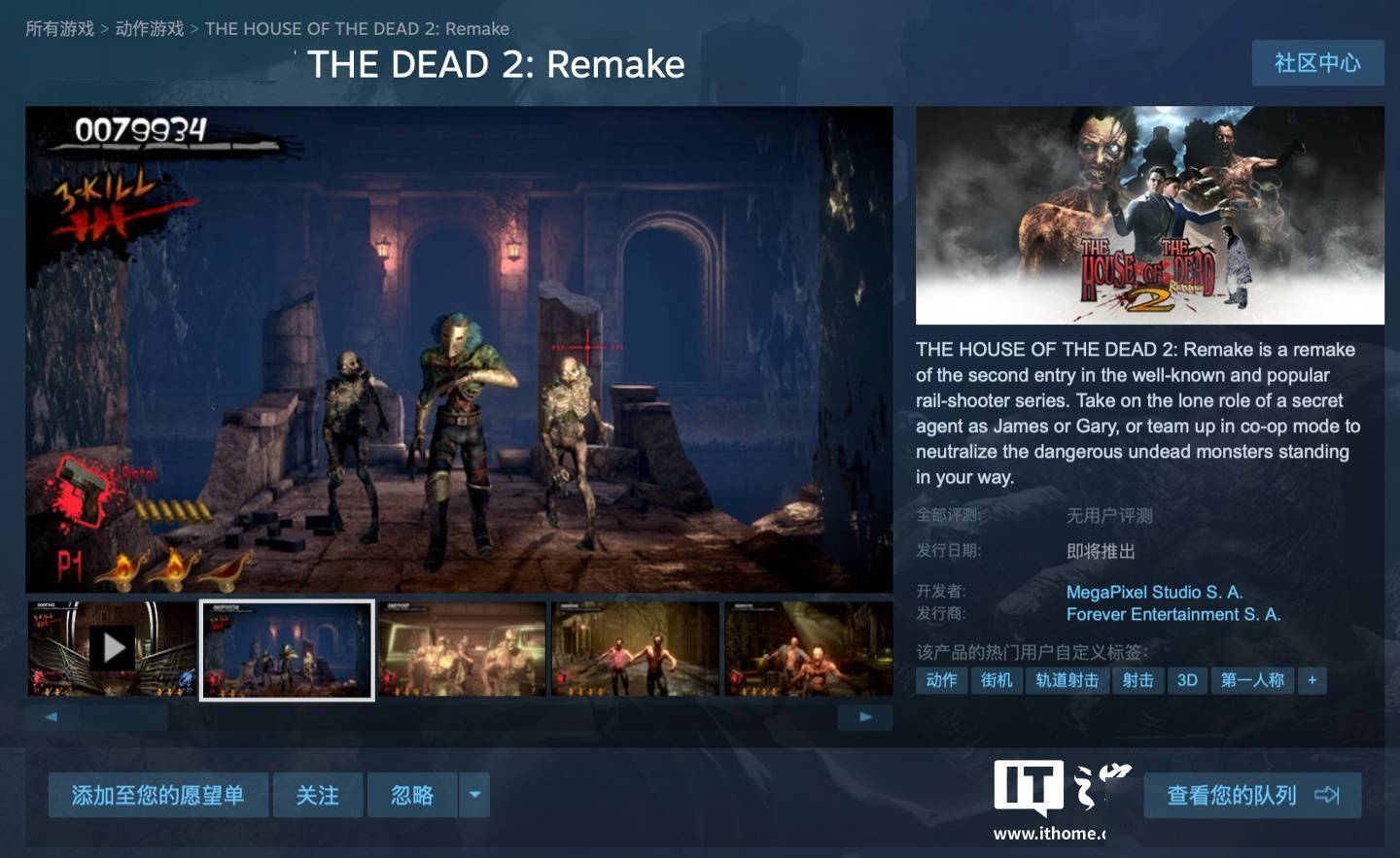 IT之家 7 月 8 日消息,世嘉宣布旗下《死亡之屋 2:重制版(THE HOUSE OF THE DEAD 2:Remake)》将于 2025 年 8 月 7 日发售,官方同时透露本作除了登陆 PC(Steam)平台外还将登陆 Switch 平台,IT之家附游戏 Steam 商品页 (https://store.steampowered.com/app/3376690/THE_HOUSE_OF_THE_DEAD_2_Remake/)。