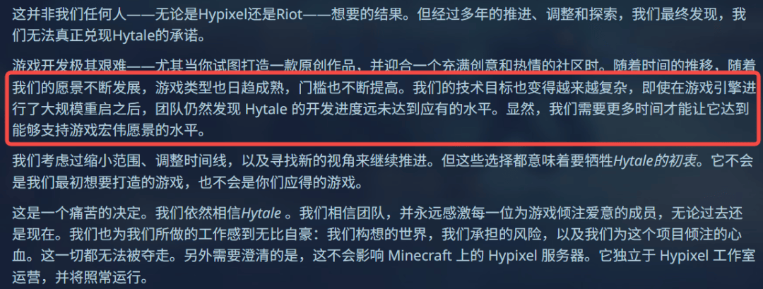 实际上自《Hytale》被取消后, 一些前员工除了指责Hypixel管理层胡乱指挥,也表示拳头公司对《Hytale》确实是仁至义尽了。