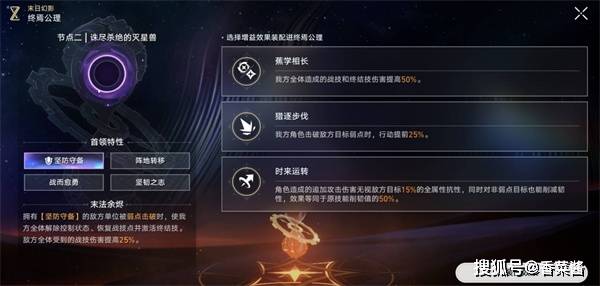 灭星兽的部位会向我方单位施加虚数或量子属性附魔标记。