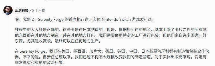 独立游戏发行商Serenity Forge的CEO杨正华早在几个月前就曾在Reddit上指出:“这些卡带是在日本制造的,但除卡带以外的其他组件——比如包装盒、预购赠品、收藏品等——基本都在其他国家生产”。因此,诸如典藏版中附带的玩偶、贴纸等周边物品预计不会受到影响。