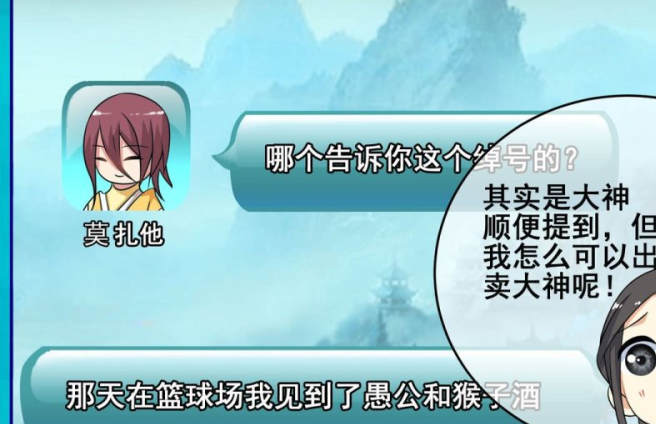 莫扎他发消息问道:“哪个告诉你这个绰号的?”微微说:“那天在篮球场我见到了愚公和猴子酒。”其实大神也提过,但是微微又怎么可能出卖她家大神呢。