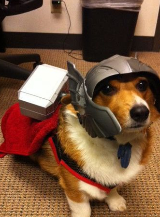 电影中,雷神托尔的头盔戴上之后就意味着要开启战斗模式了,而我们可爱的柯基则是天生自带立耳天线效果。