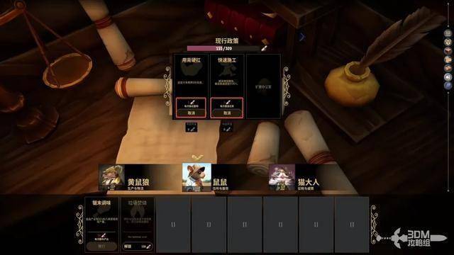 市政厅里可以选择政策,需要留意政策的描述,例如用背硬抗,是每一次搬运重物就会消耗一点支持点数;如果还需要使用支持点数引进更多鼠鼠那么就不要使用政策。