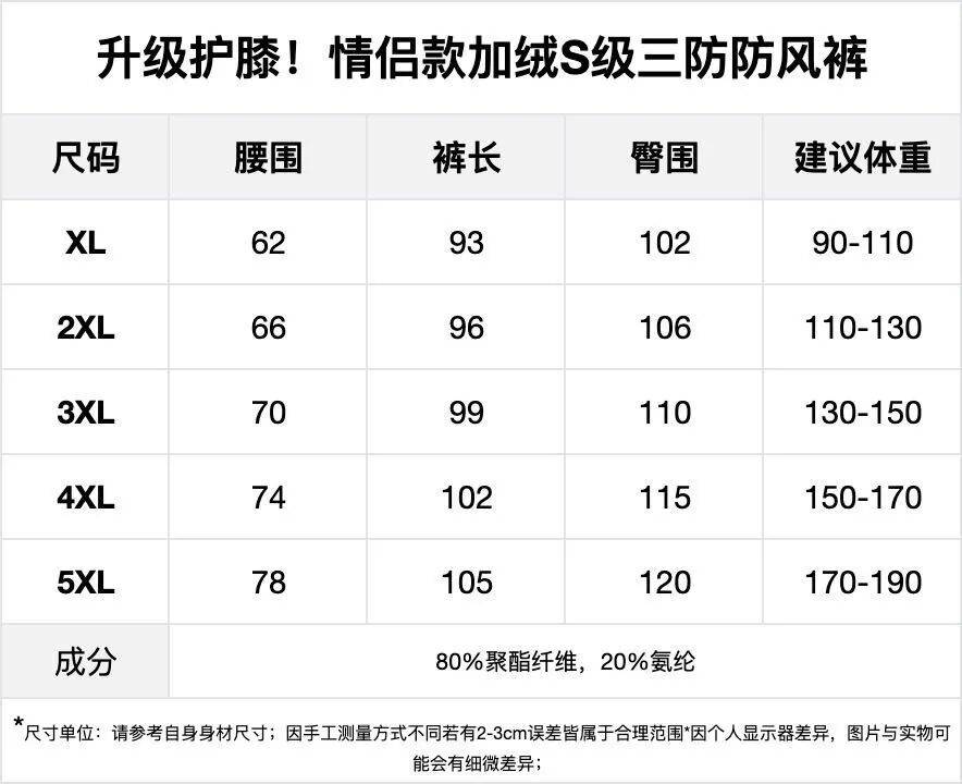 送8元退货运费第二代升级护膝[情侣款加绒软壳三防防风裤]防风防水、防污!抽绳加绒加厚防风运动裤!
