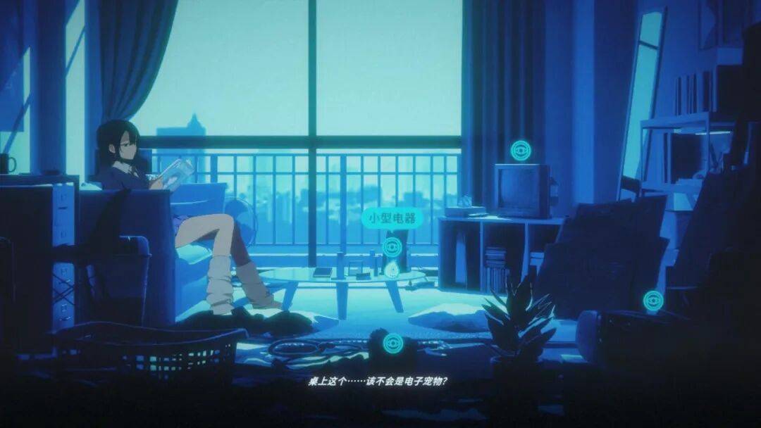 VHS录像带风格的粗糙颗粒、冷蓝色调,Lo-Fi 环境音与雨声,构成了我对这个20分钟demo的全部印象——几乎完全是氛围上的。或许,你甚至不需要游玩这个demo,也能从游戏极具叙事感的对话演出中,体会到这种沉浸氛围: