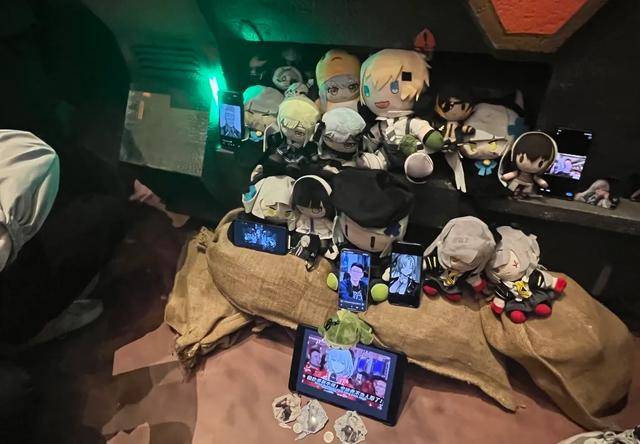 在“艾莫号”列车模型侧面的一个小格子处,刚从音乐会走出来的玩家们拿出自己随身携带的“少女前线”系列IP游戏的“棉花娃娃”,临时组了个“热爱局”。
