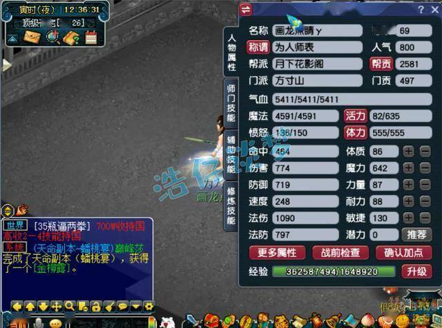 69级方寸山没打临时符的面板属性,这应该是大部分平民玩家的属性吧!