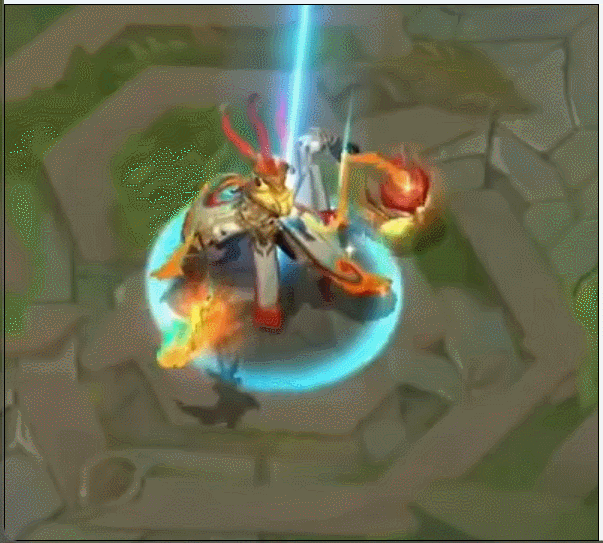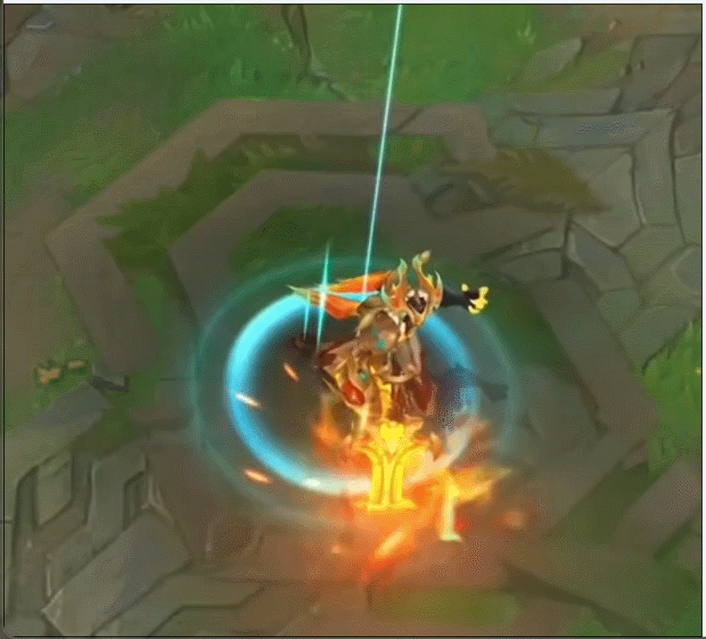 这款皮肤会改变剑魔的平A特效、四个技能的特效及音效。与锤石类似,剑魔所有与地板有互动的技能都会掀起一层青金烈焰,在开启大招“大灭”时,剑魔一对镶着金边的光影巨翼会猛然打开,仿若朱雀之羽。