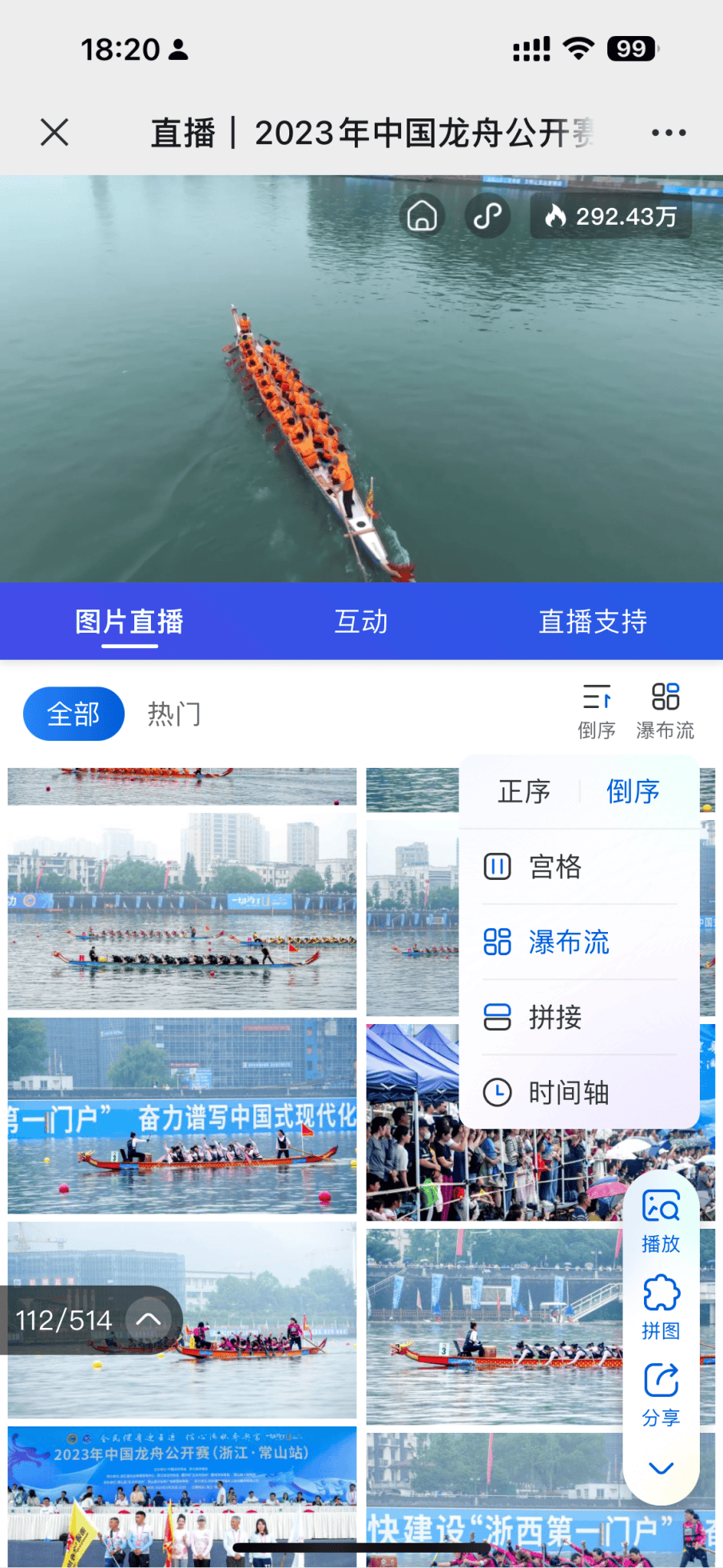 以龙舟赛事为例,活动主办方为了能及时传递赛事盛况,就可以“视频直播+图片直播”的双直播模式,让观众实时感受传统龙舟赛事的“速度与激情”。