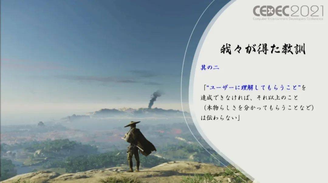 在2021年的日本游戏开发者大会CEDEC上,SIE本地化专家坂井大刚与《对马岛之魂》本地化制作人关根丽子向在场的开发者详细介绍了《对马岛之魂》这款由欧美人开发的日本题材游戏是如何做好本地化的。