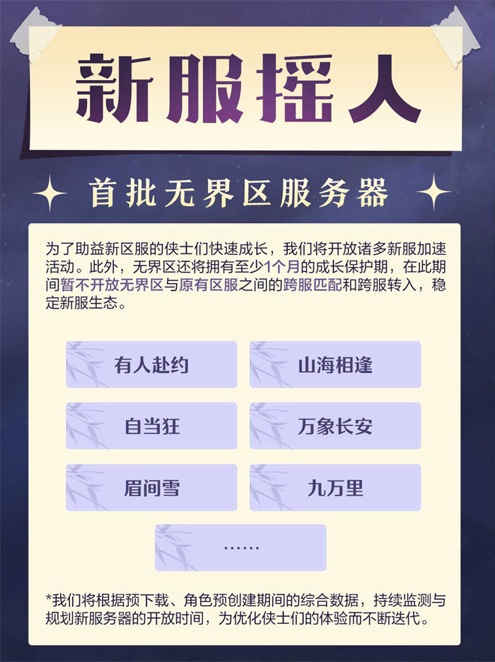 历添新岁月,花满宴河山,无界区新服火热开启,就等你来玩《剑网3》啦!无需担心进度差距,无论是初入江湖,还是早已名震四方,抑或是久别重逢,这片无界江湖都热情欢迎侠士的到来!七大新服活动助力各位侠士畅玩无忧,在这里与亲友们齐头并进,开启江湖新征程,百种玩法各有千秋,期待侠士挖掘探索出属于自己的游玩乐趣!