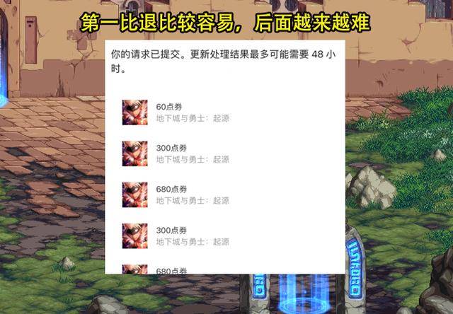 值得注意的是,这种退款方法仅适合那些原本不打算充值的0氪党玩家。因为一旦申请退款成功,玩家的点券余额将显示为负数。如果玩家想要再次充值,就需要先将之前的退款金额抵扣掉。例如,如果玩家退款了48元,然后再次充值648元,那么实际到账的点券将只有600元。