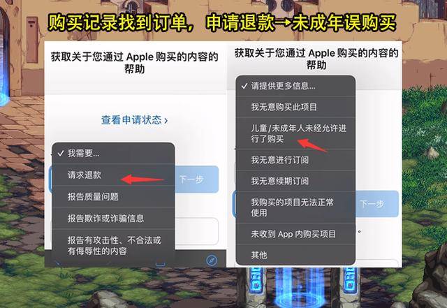 那么,这些玩家是如何成功退款的呢?其实方法非常简单。只需在苹果App Store中点击自己的ID,然后在购买记录中找到相关订单并申请退款。在申请时选择“未成年误购买”选项,并按照提示进行操作即可。