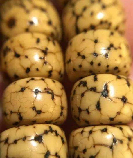 而另一种解释是,奶黄色或者奶白色星月开片是因为温差原因,尤其在西藏地区,高原气候,昼夜温差大,导致人们手中的星月热胀热缩,可能新入手没多久的星月,包浆还不厚呢,就出现了“裂痕”,也就是咱们说的开片。