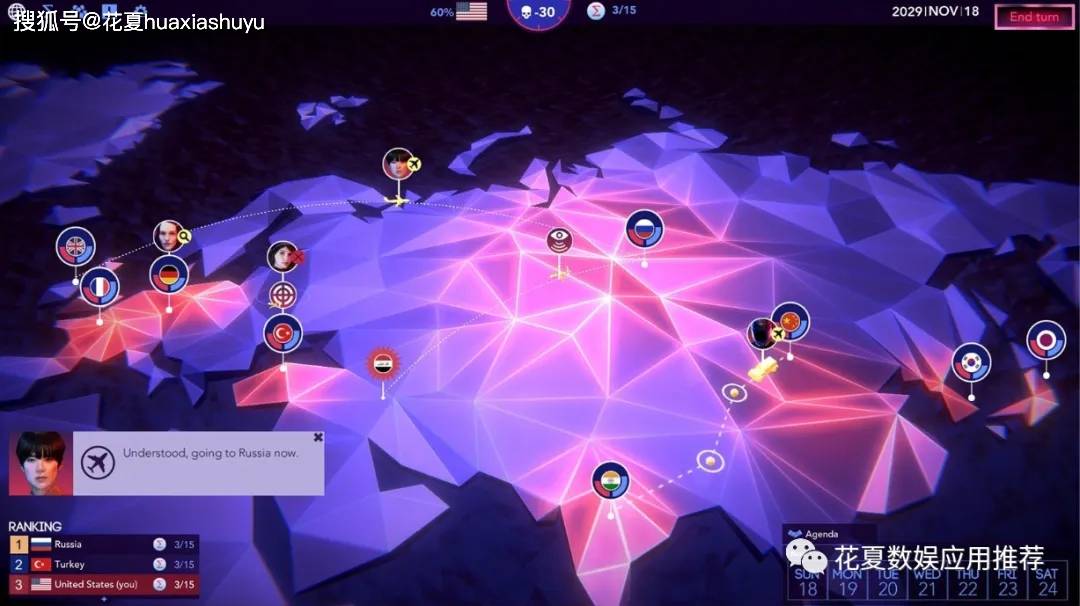 回合制谍报战:动用你的特工支配整个世界。威逼、利诱、操纵,实施产业间谍活动……你可以无所不用其极,尽情使出阴招,攻击对方的下三路。动态叙事:和超过一百名NPC交往互动,他们来自私人团体、武装集团以及政坛……究竟是与他们联手,还是尔虞我诈,亦或暗下杀手,全由你来决定。