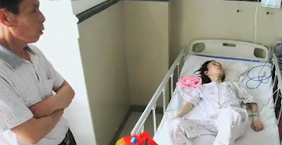 一旁的父亲王道洪看着躺在病床上的儿子显得十分冷静,