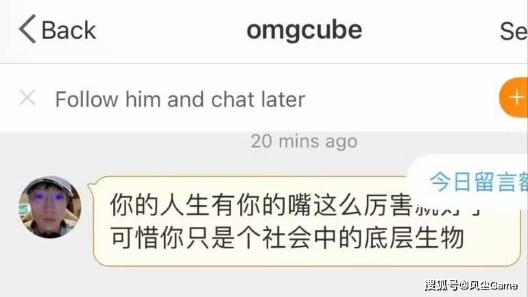 Cube离队,对于OMG来说影响确实不小,因为队内是没有替补上单的,如果叫不回来的话,下一场比赛,估计要临时启用二队上单,OMG的粉丝看到上单跑路,也是忍不住了,私信Cube对其一顿狂喷,结果Cube丝毫不怂,在私信里跟OMG粉丝对喷,脏话是层出不穷。