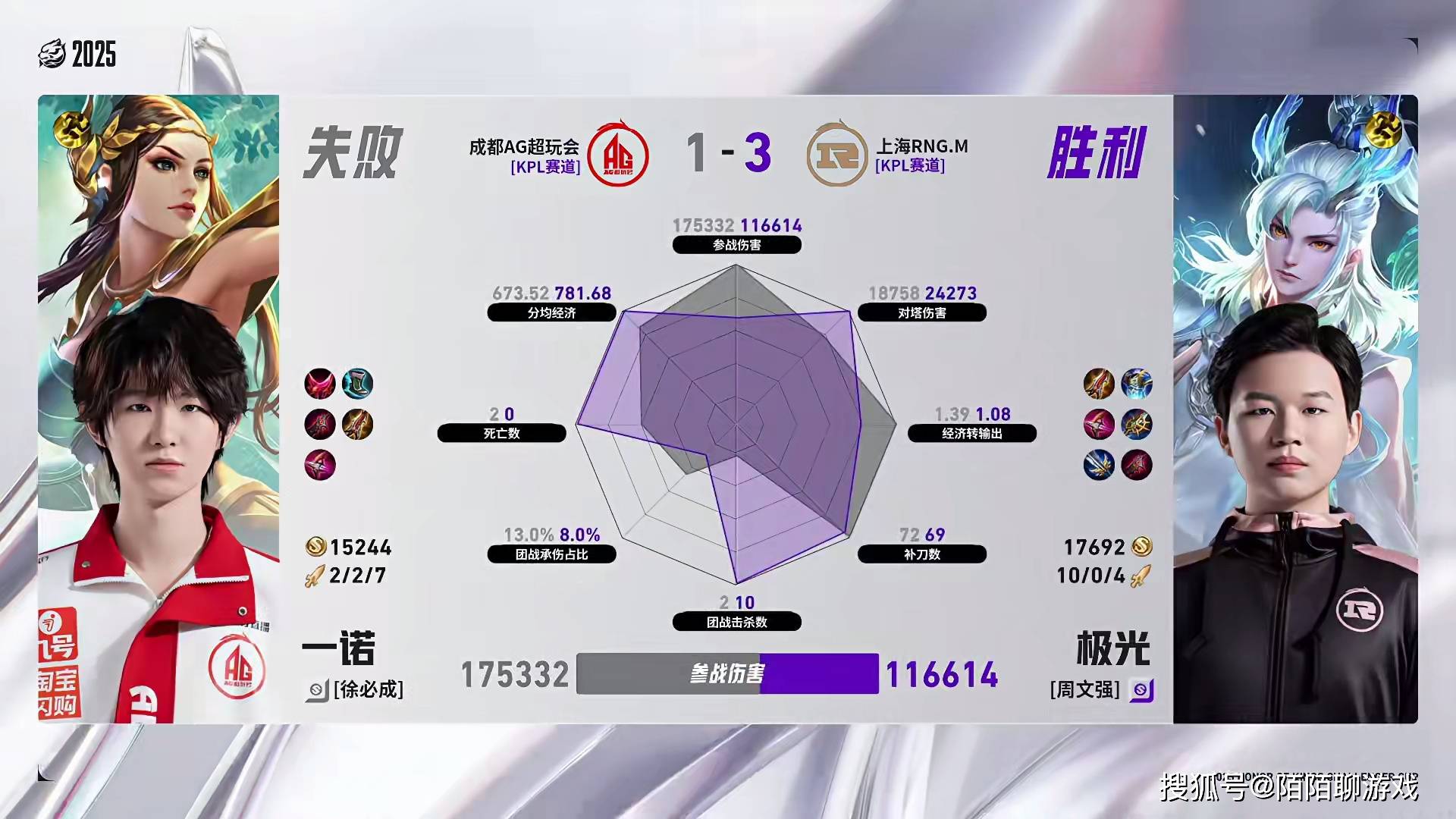 最终,AG在暴君的争夺中获胜,一波占据了场上的优势。而这一波,AG的经济直接领先将近5000,实在是夸张!4比3,AG超玩会逆转拿下RNG,晋级挑战者杯的八强!