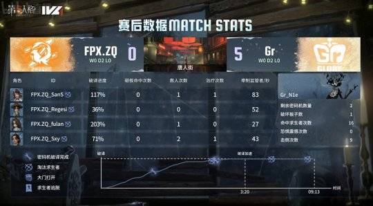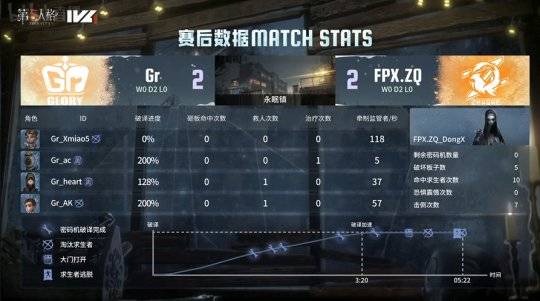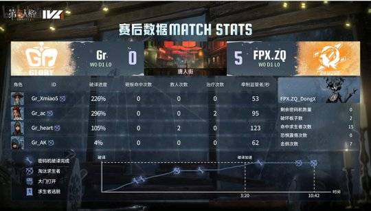 第一局比赛上半轮:FPX.ZQ求生者对阵Gr监管者
