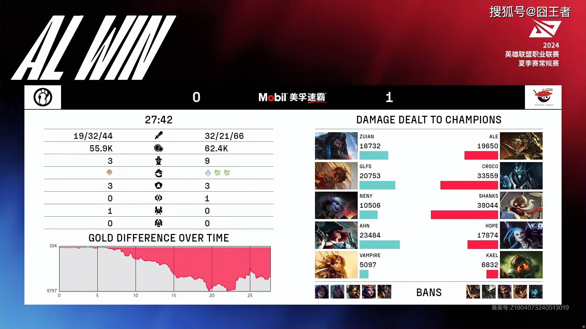 结果两支喜欢打架的队伍,在第一局比赛里面,在27分42秒的比赛时间内,打出了51次击杀。这一数值,仅次于TT对阵FPX的比赛。但是,由于时长的关系,其血腥程度高达1.85,远超TT和FPX的1.52。最终AL在极限大乱斗下,以近10000的经济优势,赢下第一局比赛!