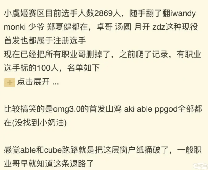 最近LPL可谓是风波不断,继cube跑路去当陪玩后,小老虎也遭遇了俱乐部“宫斗”事件,而陪玩之风似乎也愈演愈烈,近日网络上一则关于虞姬网泄露职业选手信息的消息引发了热议。