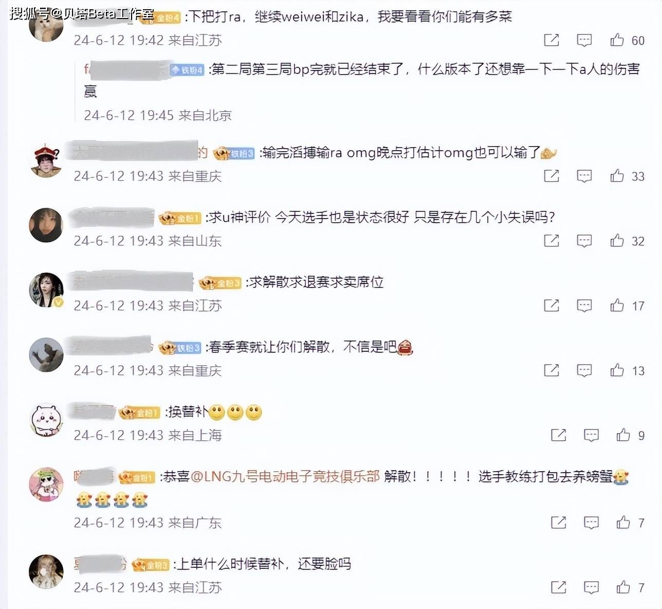 赛后LNG官博也炸了,不少粉丝都非常生气,要求LNG在下一场和RA的比赛中,进行人员更换,粉丝要求更换上野,打野位置换替补的shadow上来,上单位置来个替补,这两位选手的表现太差了!也有粉丝怒斥:第二局第三局的BP太差了,选出来就结束了,教练必须给个说法!还有粉丝表示:春季赛就说了解散,现在还是一样的说法,解散!把席位卖了吧!
