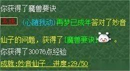 以场景定制为例,如果你定制了指定地图在某个时间段内的场景音乐,在定制时间开始时,这个场景内会在随机坐标刷出NPC“妙音仙子”,只要回答出当前场景播放音乐的名称,就可以获得奖励,还有几率获得物品奖励,比如图上这位玩家就获得了修炼果。