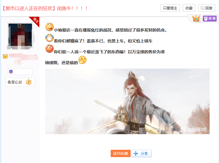 官方积极作为带来的直观影响就是给足了玩家情绪价值,这也是每逢游戏大事件,玩家愿意与游戏共进退的重要原因。此次黑市价格起飞,也和这场“6.1 MMO大会战”有不小关系。不少现在才得知剑网3常年遭受“资本霸凌”的玩家心里憋不下这口气,喊着“情怀啊”什么的,就将为剑网3应援的浪潮从WB(微博)扩散到了WBL(万宝楼)。