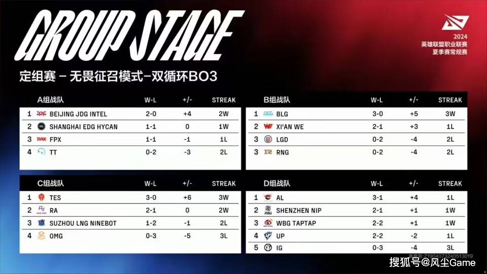 LPL夏季赛定组赛,除A组的外的BCD三组,第一轮组内循环,已经快结束了,目前17支战队中,仅有3支队伍还保持着全胜的战绩,分别是A组的JDG,B组的BLG、C组的TES,这三队的成绩,基本上是默认出线了,与此同时还有5支战队,至今都没能收获夏季赛首胜。