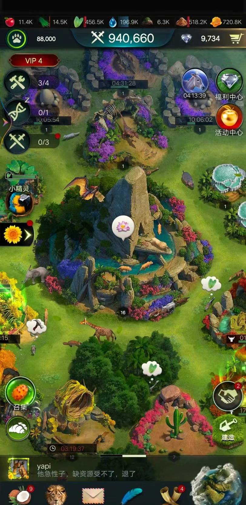 自身的领地在经过发展后,就可以依靠变异野兽来争夺资源和管理领土,而它们也有不同类型,主要有战斗型以及发展型。前者可以作为队伍中的先锋,带领其他野兽们出去战斗,他们一般都有特殊的能力,有的能给队伍带来攻防上的加成,有的则是直接作用于敌方。