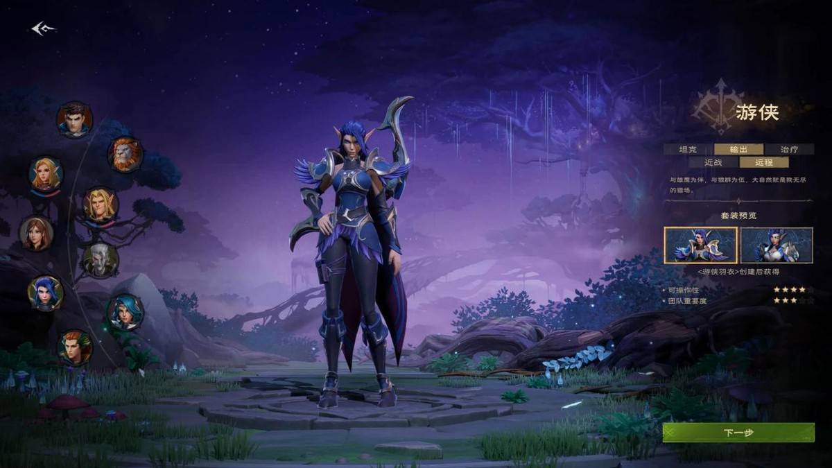 比如我这一次主要体验的是游侠,在游戏里她是一个以弓箭为主要武器的远程职业,两套分支则分别对应可以召唤野兽协同作战的御兽系和强化射击的弓箭系。