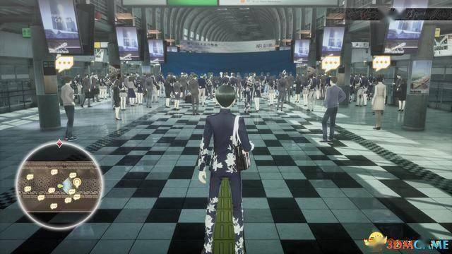 左下角是小地图,可以看到玩家的朝向、可触发的对话和地图设施(门、楼梯等)。