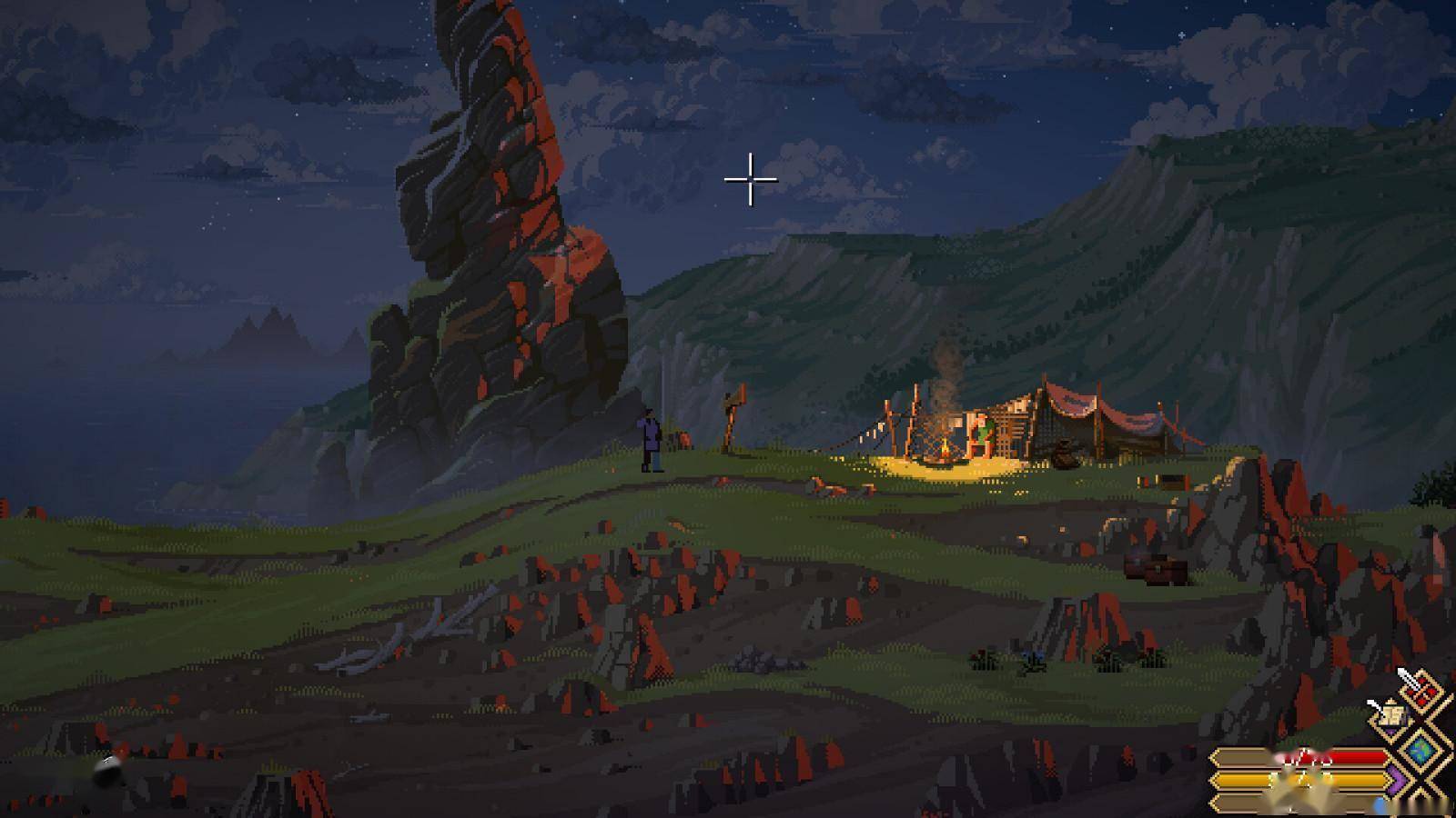 我们的目标是创建一款功能丰富的RPG,结合我们喜爱的80年代末老式点击冒险游戏、动作游戏和益智平台游戏的一切,而不受旧技术的限制,并在整个游戏中强调整个探索玩法。我们希望将像素艺术美学推向极限,并利用当代技术实现早期电脑游戏不可能实现的游戏功能和内容。