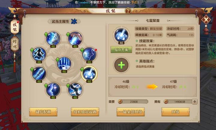 玄慈的技能指点适合打近战时选用,再合理配合上暗器可使定身时间超过10秒,能使技能收益最大化,再合理配合上暗器可使定身时间超过10秒。萧远山的技能指点属于PK神技,非常限制各个门派的自保技能。