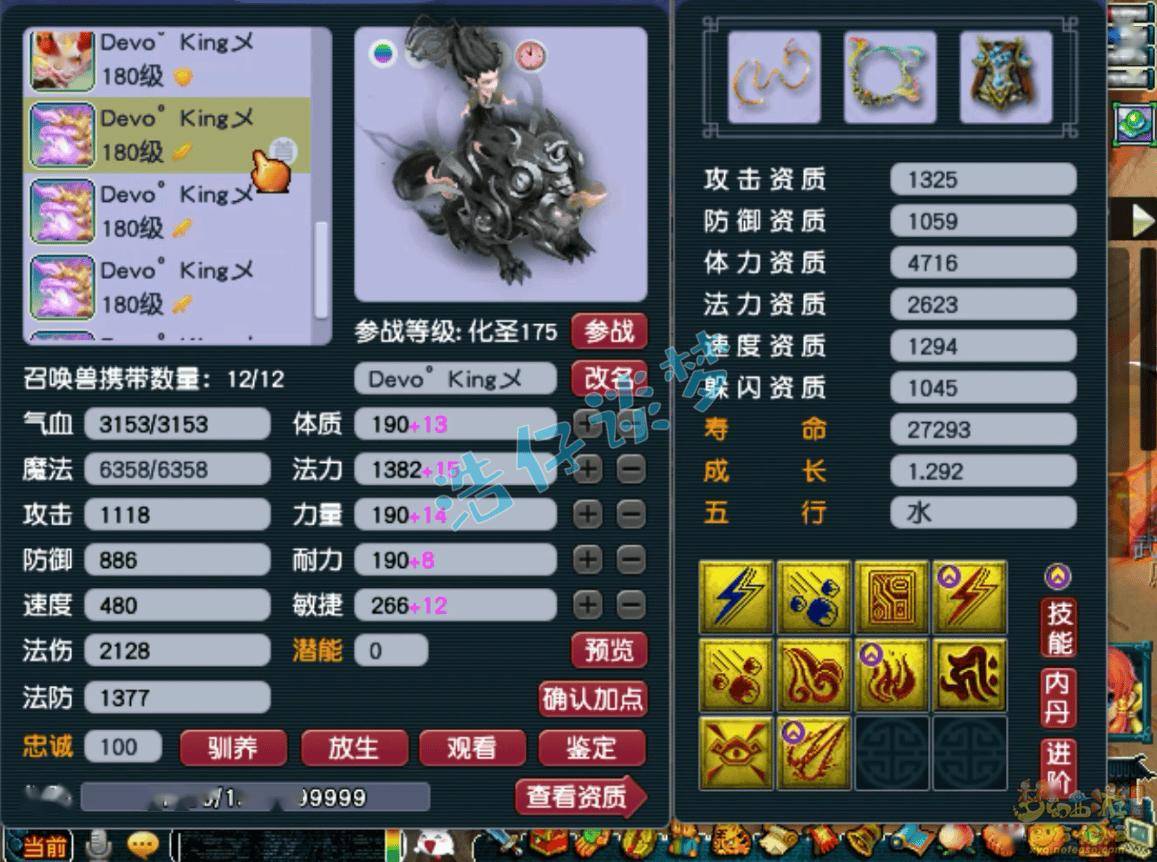 9技能净台法防配速血宠童子,高内丹打的是电魂闪!