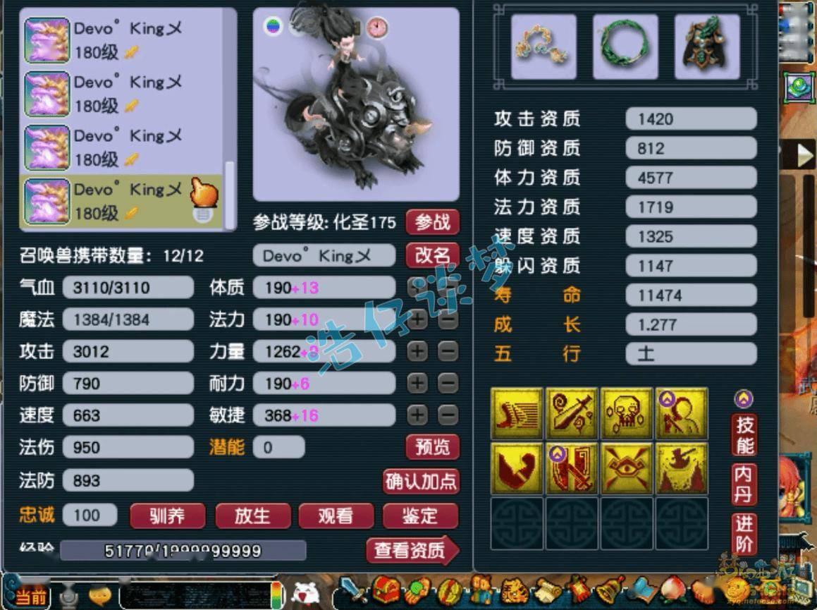 12技能血攻壁垒童子,人称老壁垒,这种宝宝的成长资质都很不错!