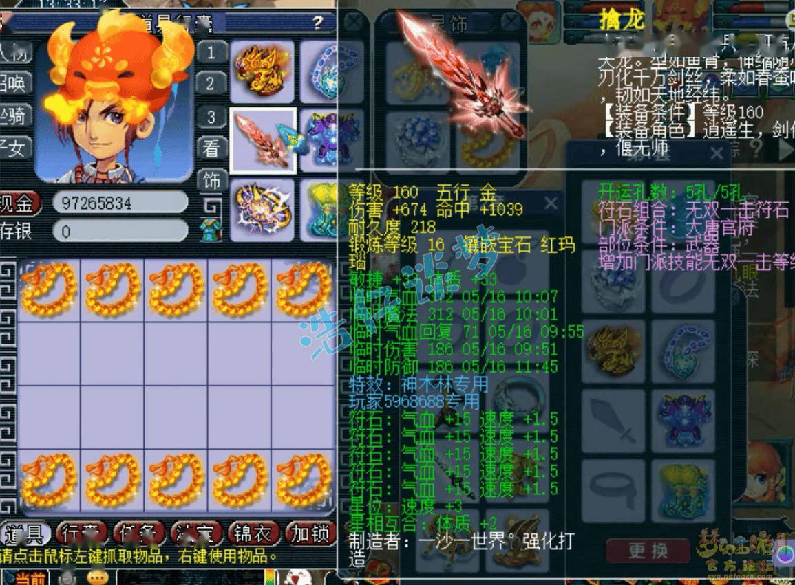 160级高伤专用武器,敏体双加66,打了16锻红玛瑙!