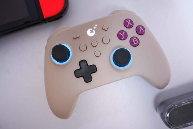 手柄的按键布局与Xbox手柄相似,为玩家带来了熟悉而亲切的操作体验。其中,XYBA四键采用了粉色设计,并内置了对应印字,看起来十分有立体感。在肩键的设计上,谷粒金刚三Pro采用了霍尔线性感应式ZR、ZL线程按键,这种按键不仅手感好,而且精准度高,无论是快速移动还是精确瞄准,都能轻松应对。