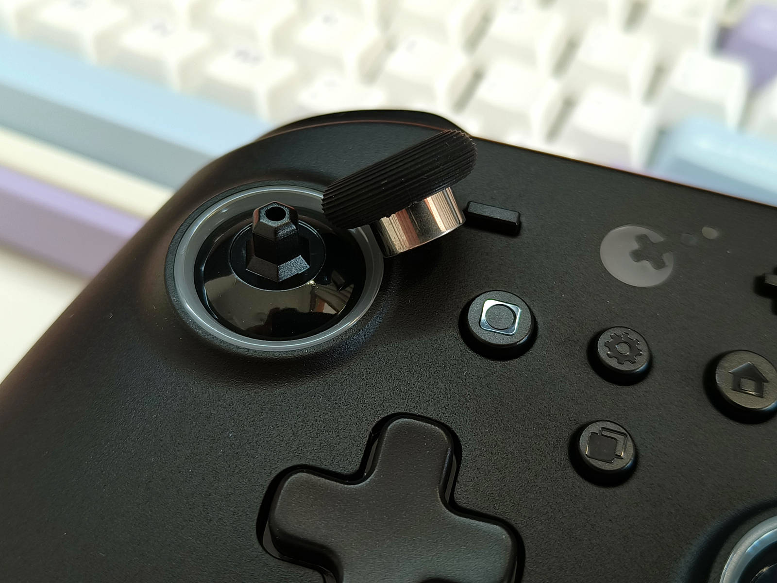 谷粒金刚3Pro摇杆处设有“金刚圈”设计,可以有效起到耐磨且防滑的作用。此外,摇杆底部增加了多功能星环RGB灯,可设定摇杆流光模式、震动跟随模式及扳机流光模式,星环灯效不仅为整体增添了视觉效果,同时也让操控状态一目了然。玩家还可根据自己的需求进行个性化定制。