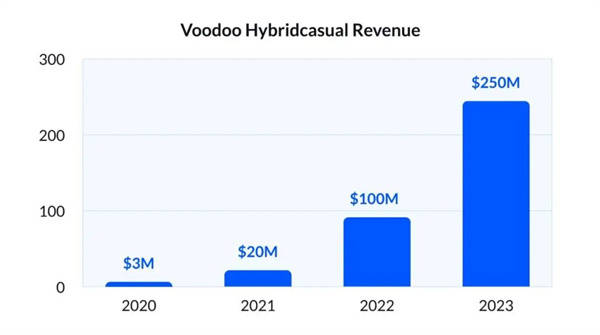 1)Voodoo截至2023年有50%的收入来自IAP,超休闲收入仍存在惯性,占25%。目前公司混变产品年营收已超过2.5亿美元。