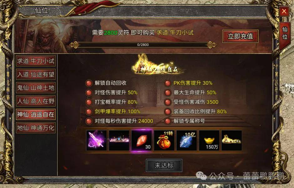 玩家通过购买仙位礼包,也能快速将转生等级提升到11转的哦。大家挑战远古遗迹里的高级BOSS,也有一定概率掉落一些高级转生凭证