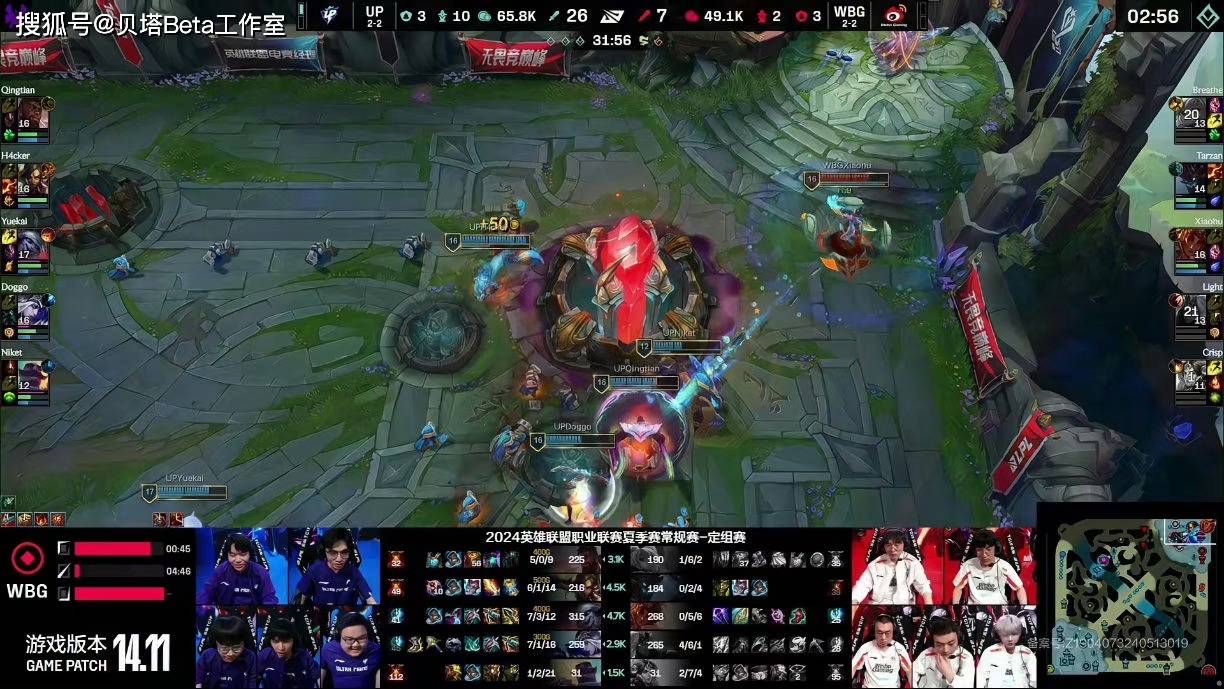 先来简单回顾一下这场BO3,第一局前期小龙团UP大胜,前期UP经济领先3K。中期UP光速拿下听牌龙,随后野区 抓死WBG两人后,拿下第一条大龙。最终UP在中路团灭WBG后,非常轻松拿下第一局的胜利。首局WBG这边毫无抵抗的斗志,直接躺平被推平。