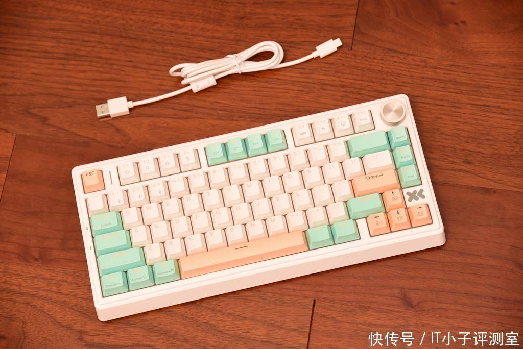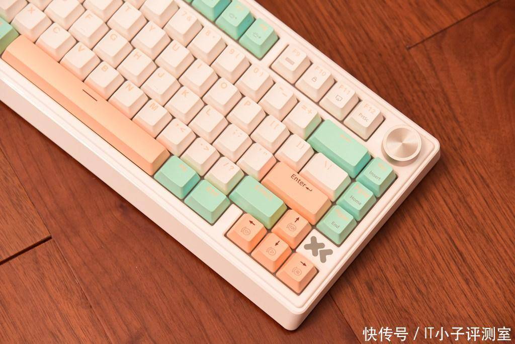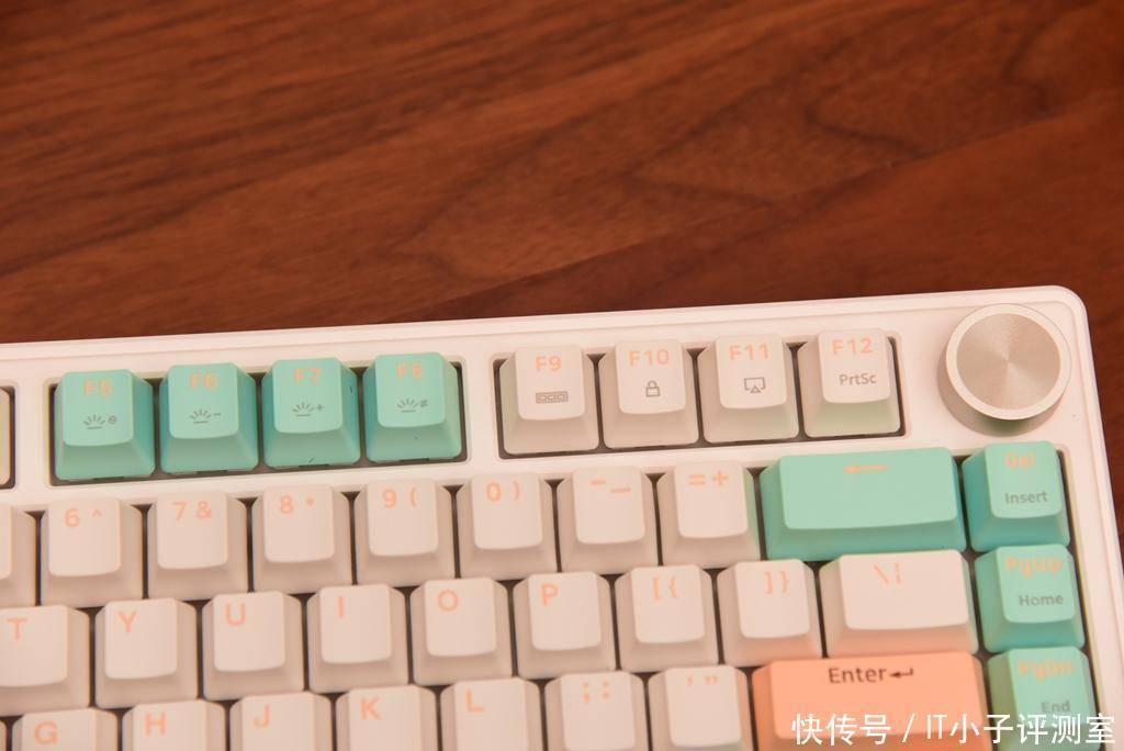 1、从外观设计来看,蜜桃薄荷的配色使得这款键盘极具辨识度,既清新又醒目,非常适合追求个性的年轻用户。同时,它采用经典的79键布局,并配备一个音量旋钮,使操作更加便捷,满足用户在日常办公和娱乐中的多种需求。