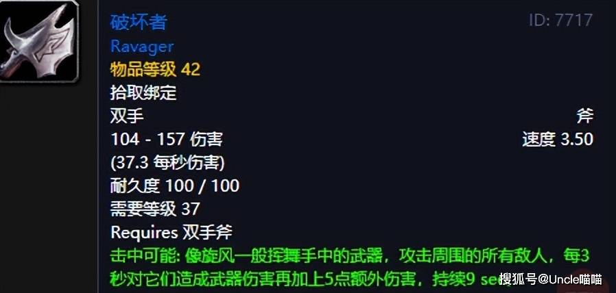 差点就给魔兽世界地球时代最欢乐也是毛伤害最恐怖如斯的武器给遗忘了,他就是血色修道院武器库的破坏者,这东西对于阶段性能拿双手斧的物理职业是必刷的,转着升级的快乐喵叔至今难忘!