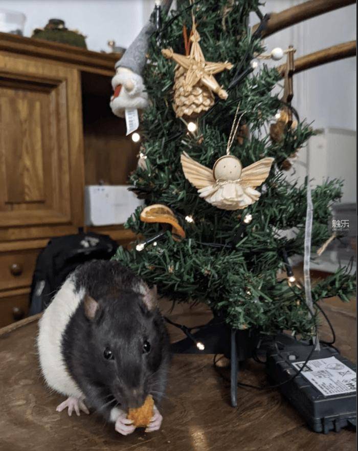 “老鼠玩《毁灭战士》”项目官网上,一张老鼠正在过圣诞节的照片