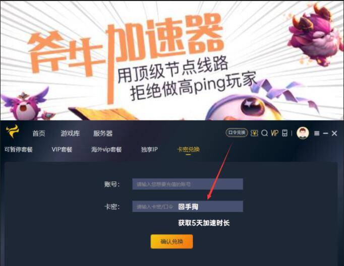 此外,针对线上游戏,它对网络要求比较高,大家总会时不时遇到卡顿、延迟高、频繁闪退、掉帧丢包等异常问题,那么,为了能获得较好的游戏体验,请打开斧牛加速器,全程加速游戏来获得稳定的网络环境。此外,可以使用斧牛加速器进行不限速下载,避免游戏下载缓慢、下载卡住不动的状况,使下载更顺利。可根据下图拿5天免费加速时长。