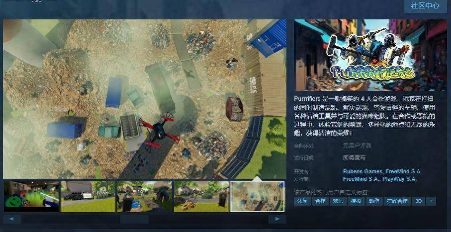 今日(6月19日),搞笑4人合作游戏《Purrrifiers》Steam页面上线,游戏支持简繁体中文,发售日待定,感兴趣的玩家可以进入商店页面。